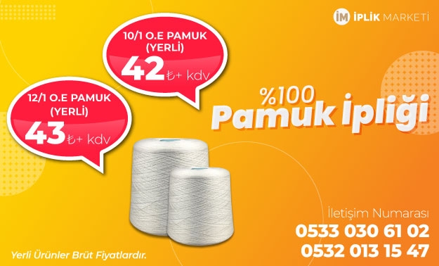 Yaklaşık 5 aydır iplikmarketi.com ile çalışıyoruz. Ürünler kaliteli, bir sorun yaşamadık .Müşteri temsilcileri çok ilgili, hızlı dönüş sağlıyorlar. Siparişlerimizde çok kısa zamanda teslim oldu, sistemli çalışmalarınızdan dolayı hepinizi tebrik eder, başarınızın devamını dilerim.